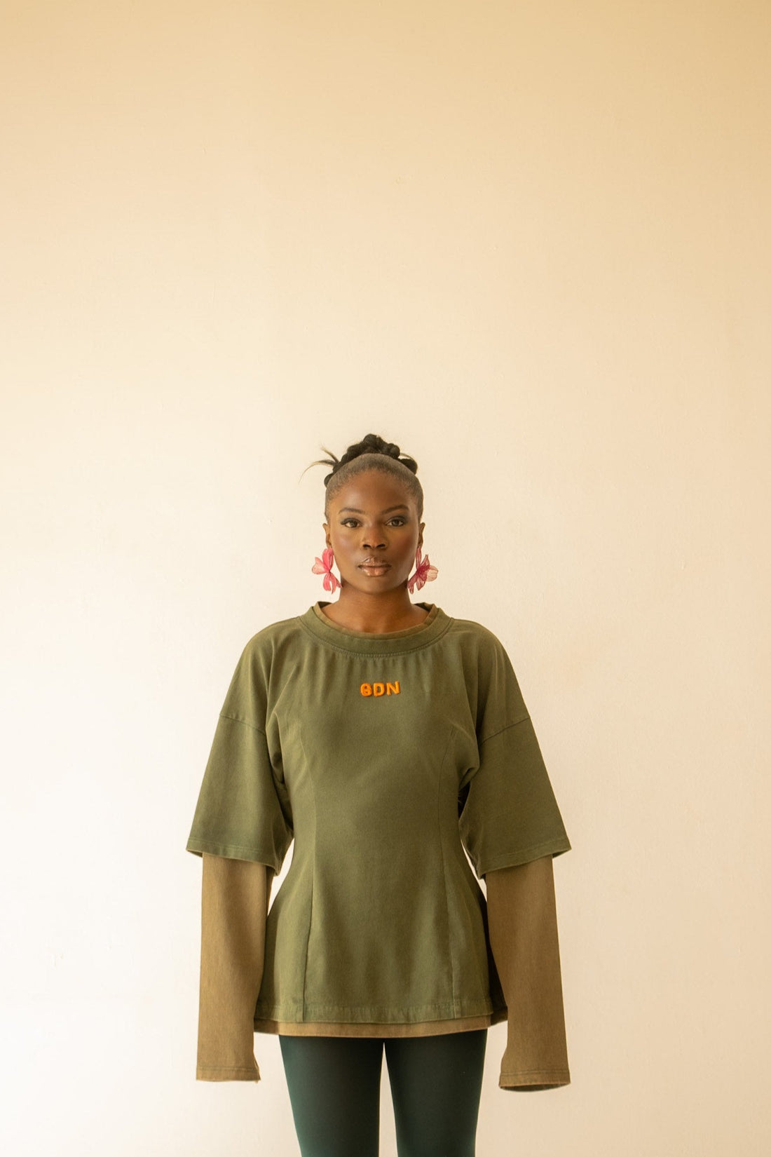 The Kairos Blouse is cut from a fluid, heavyweight fabric that drapes with intention while holding...